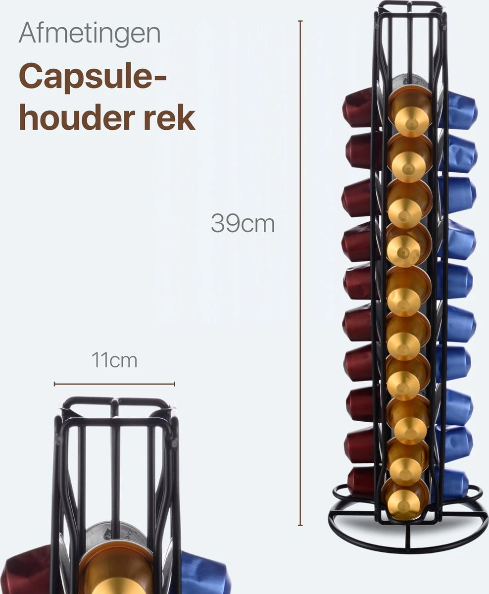 De capsulehouder is geschikt voor 40 koffie cups, zo heb je altijd een overzicht van al je favoriete koffie smaken. De houder is opgesplitst in 4 verschillende rijen. Zo kun je gemakkelijk alle verschillende smaken op een overzichtelijke manier organiseren!