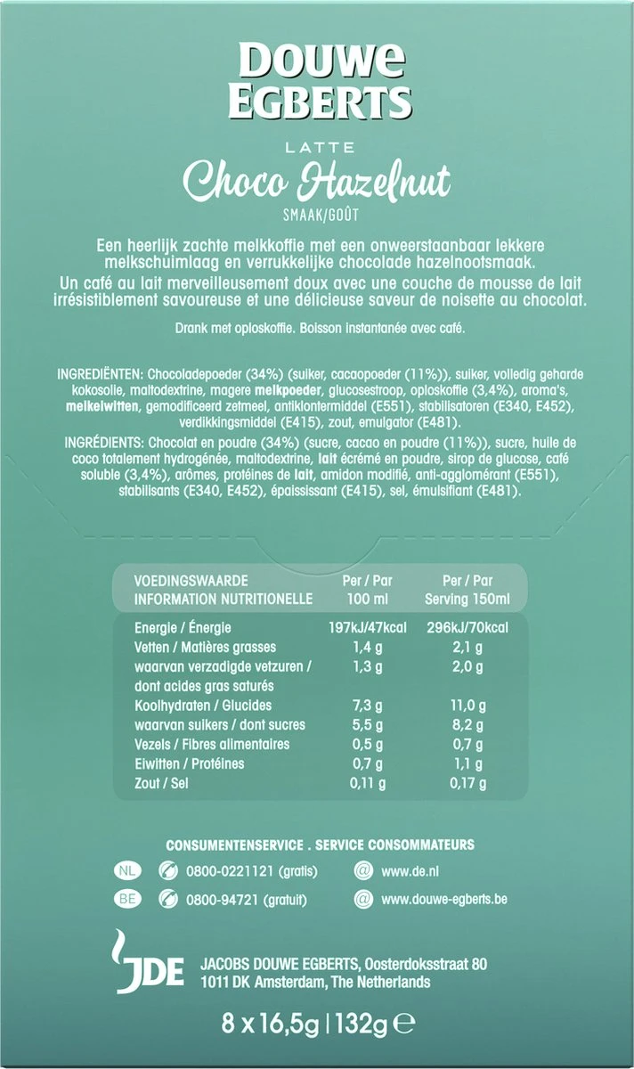 Een heerlijke zachte melkkoffie met een onweerstaanbaar lekkere melkschuimlaag en verrukkelijke chocolade hazelnootsmaak. In een handomdraai maak jij een feestje van je koffie. Op ieder moment en overal door de handige zakjes.